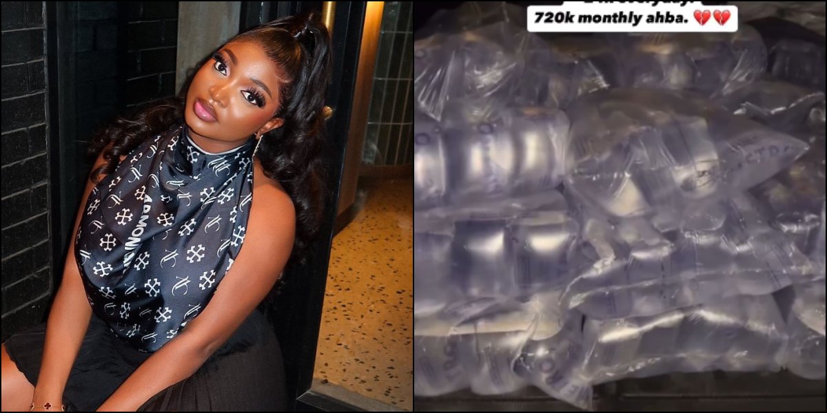 The socialite took to her social media page to reveal that she spends up to N24K daily on bags of pure water.