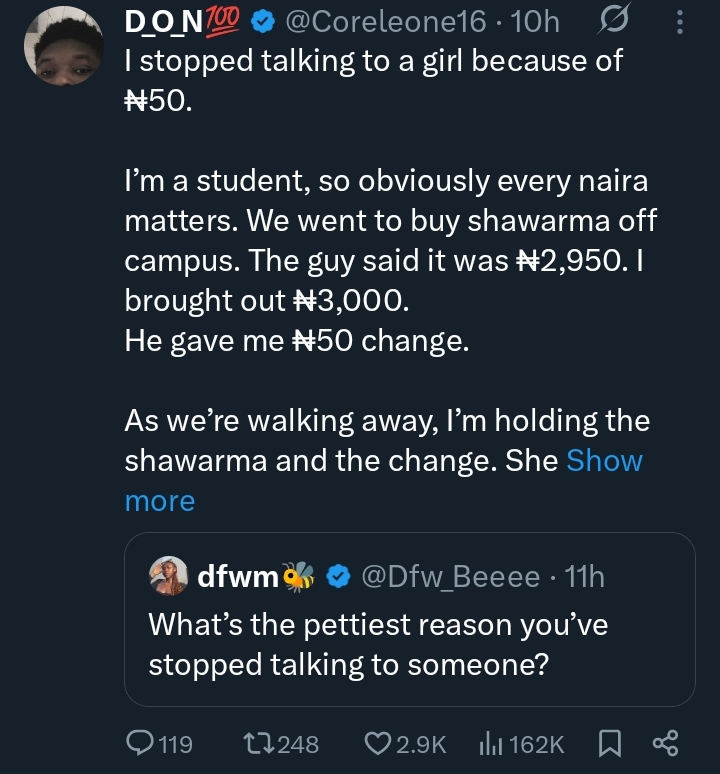 “I stopped talking to a lady because of ₦50” — Man reveals