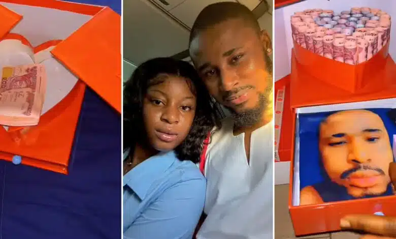 “I surprised my man” – Lady gifts boyfriend money bouquet, jewellery on Valentine’s day (Video)
