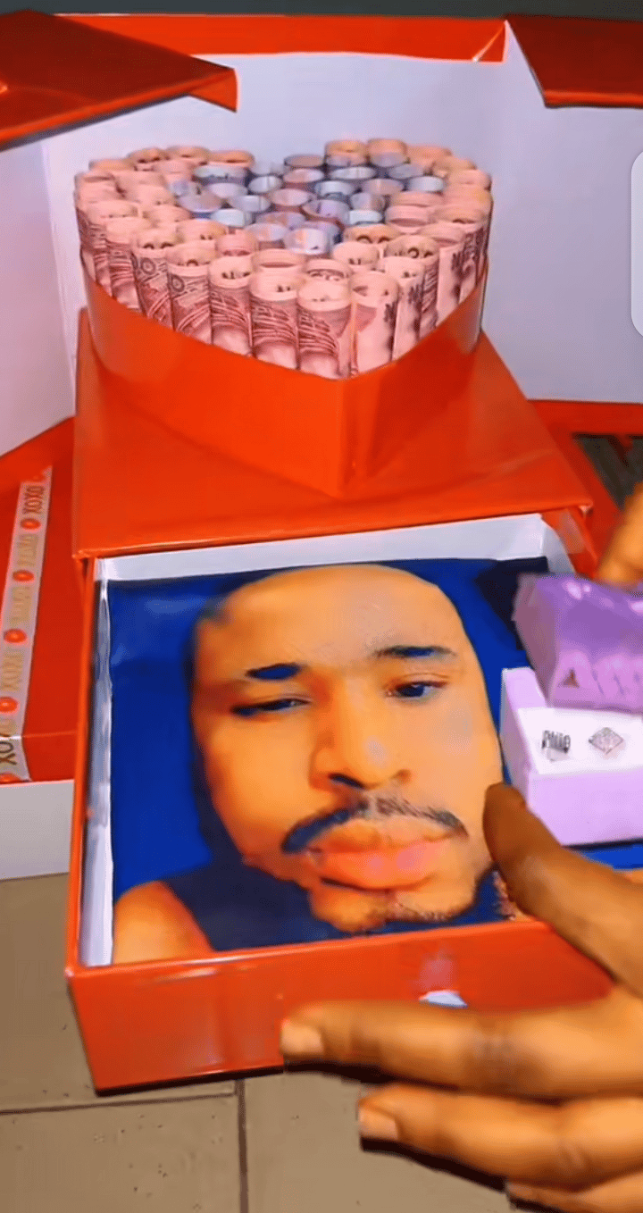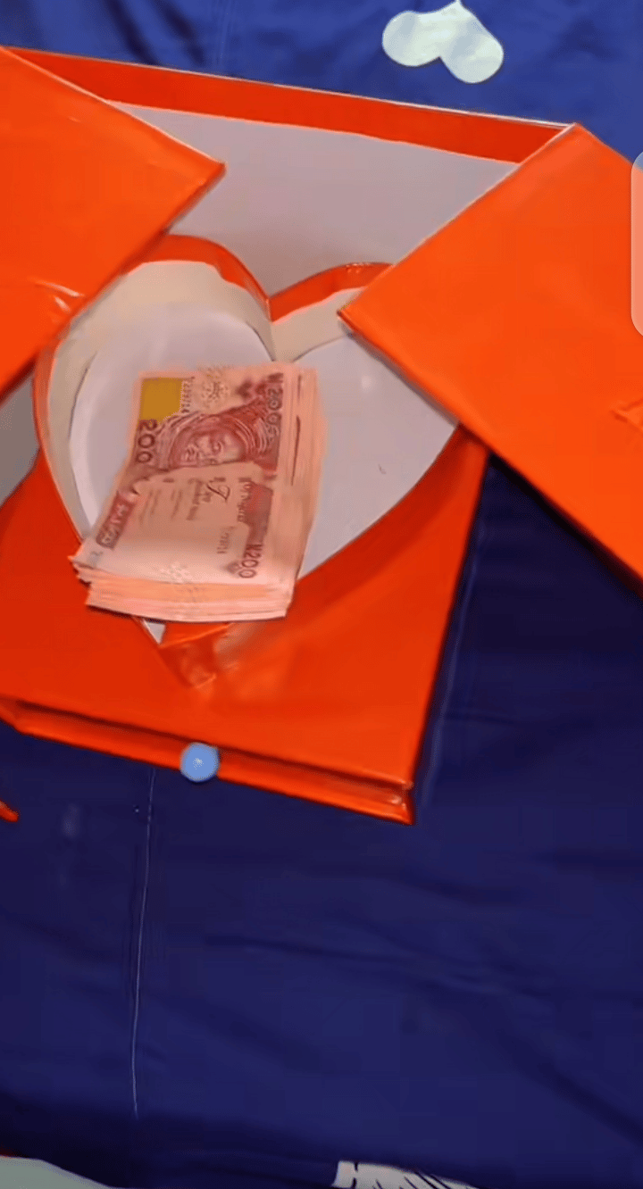 In the video shared via her TikTok account, she decorated the new naira notes in form of a love shape and also had a customized pillow and jewellery made for her boyfriend.