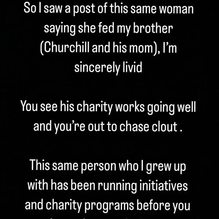 Olakunle Churchill’s sister, Gbemisola has reacted to and slammed Tonto Dikeh‘s claim of feeding him and his family.