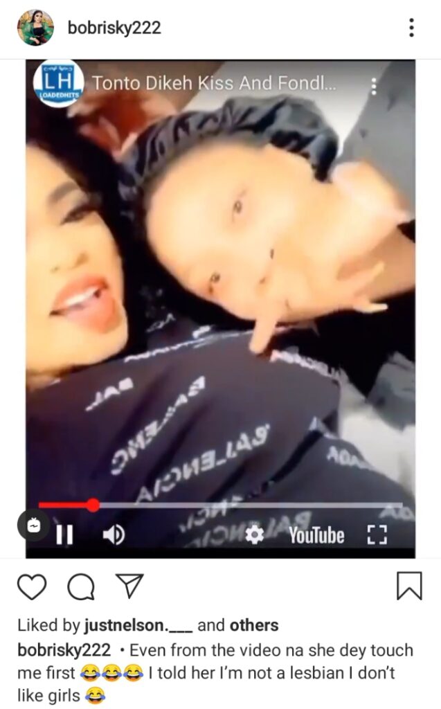 Popular crossdresser, Idris Okuneye, also known as Bobrisky has shared a video of Tonto Dikeh getting touchy with him.