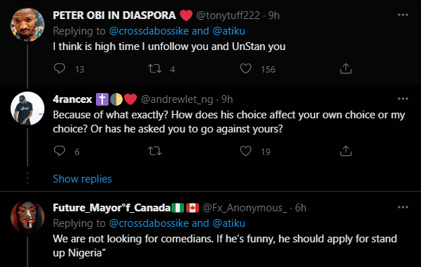 “I unfollow and un-stan you” – Fans berate Cross Okonkwo over comment following call with Atiku Abubakar