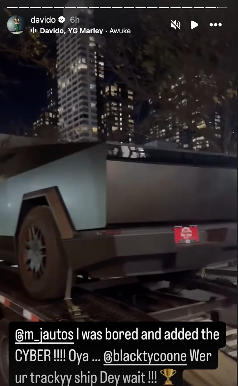 “I was bored and I bought the Tesla Cybertruck” – Davido