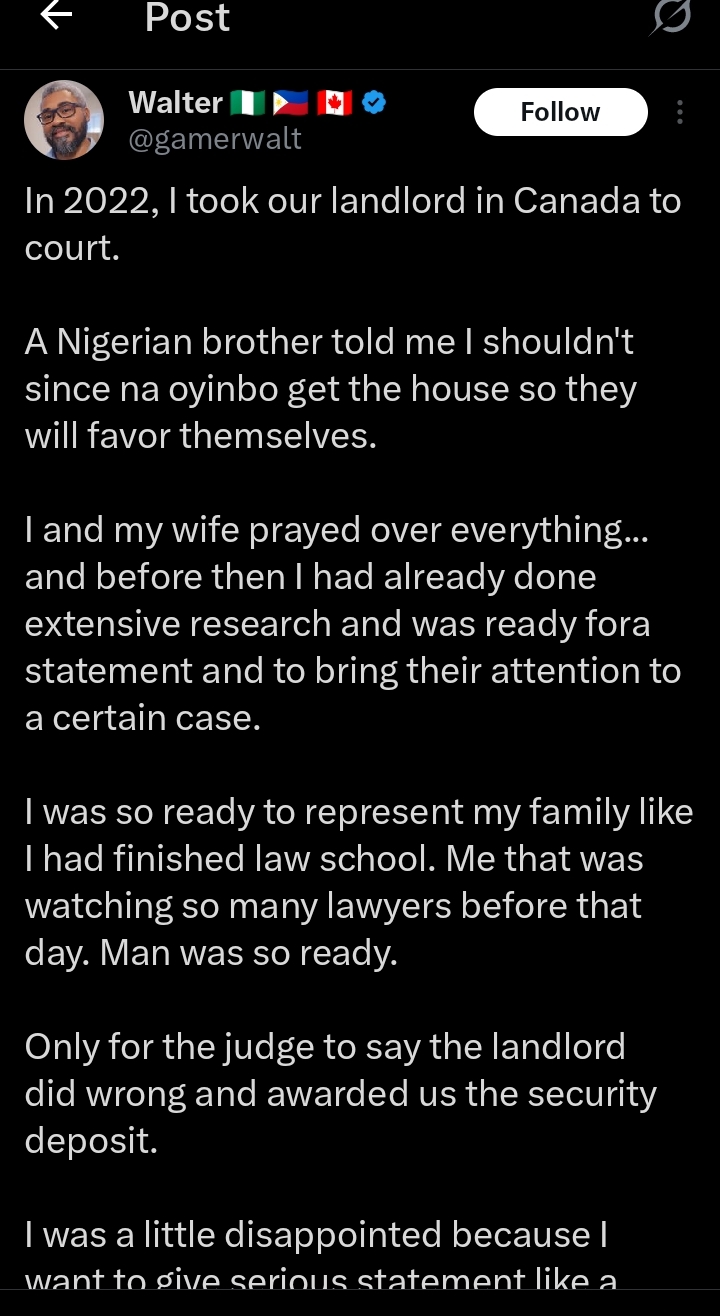 ”I was disappointed”- Nigerian man who sued Canadian landlord in 2022 shares amount awarded