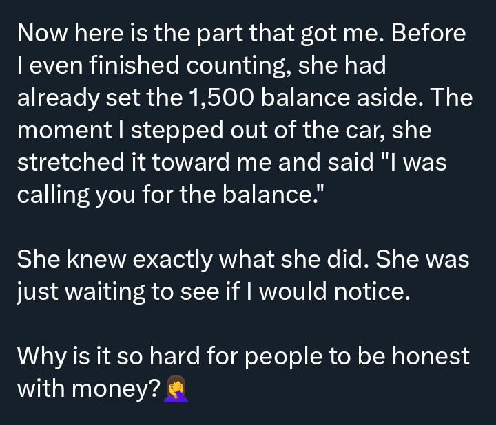 According to his account, before he finished counting, the POS operator had already set aside the missing ₦1,500.