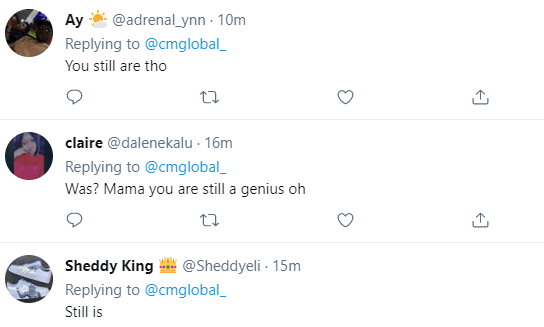 This action exhibited by Cynthia has subsequently stirred up mixed reactions from people as they wonder why one would choose to downgrade him or herself when others are trying to extol such a person. However, fans still maintain that she is still a genius, no matter what.