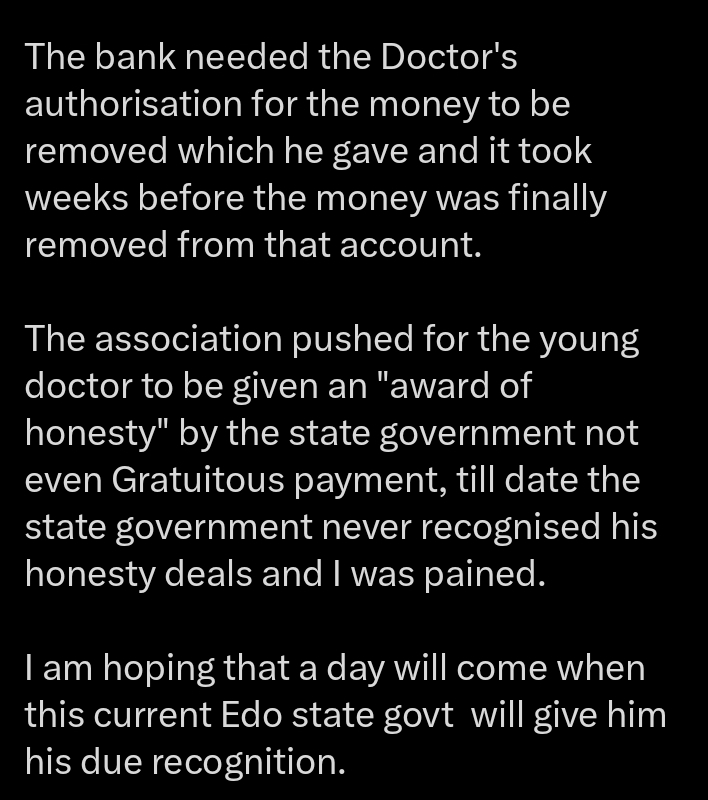The medical doctor, identified as @DoctorCruise on X (formerly Twitter), shared that the incident happened in 2024 under the previous administration of the Edo State government.