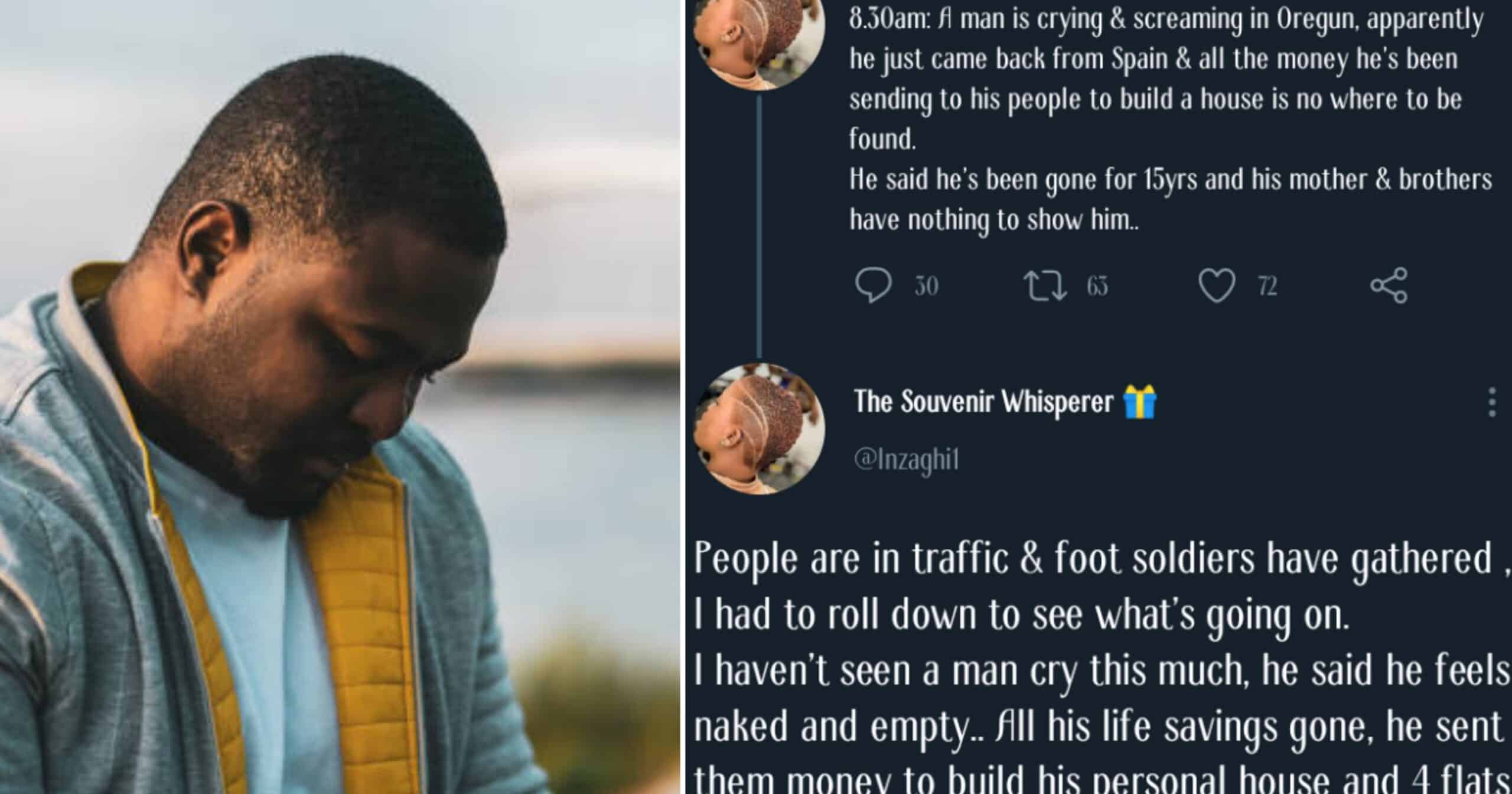 A Twitter user identified as @inzaghi1 has revealed how an abroad returnee broke down at Oregun, after finding out that his family duped him.