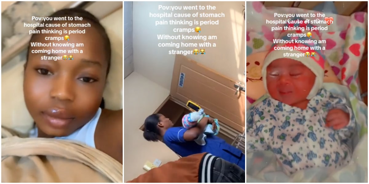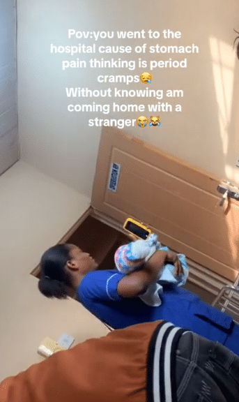 In a video that has since gone viral, the lady recounts her journey to the hospital, thinking she was merely dealing with menstrual cramps.