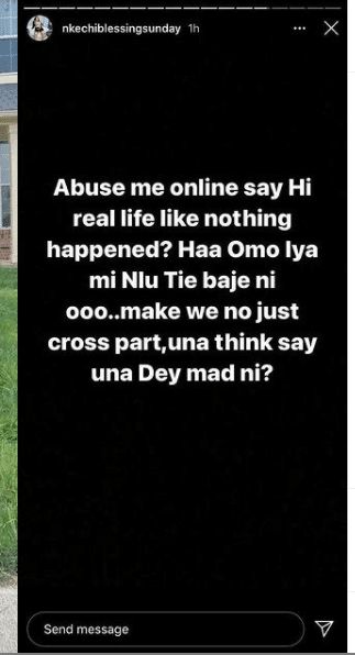 “Abuse me online, say HI in real life like nothing happened? Haa Omo Iya mi Nlu tie baje ni ooo… Make we no just cross part, una think say una dey mad ni?