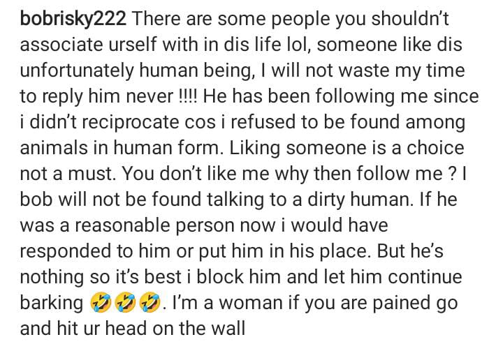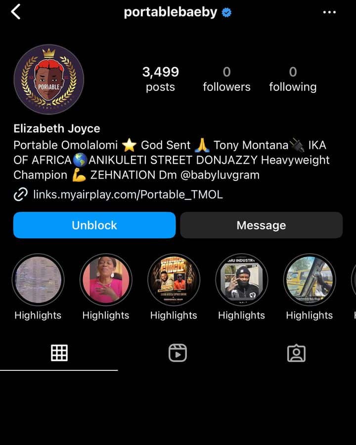 Bobrisky shared a screenshot of him blocking Portable on Instagram, saying he wouldn’t be caught speaking to a filthy person. He concluded by declaring that he is woman.