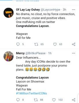 Icons mock Erica, as Laycon hits 1 million followers on Twitter