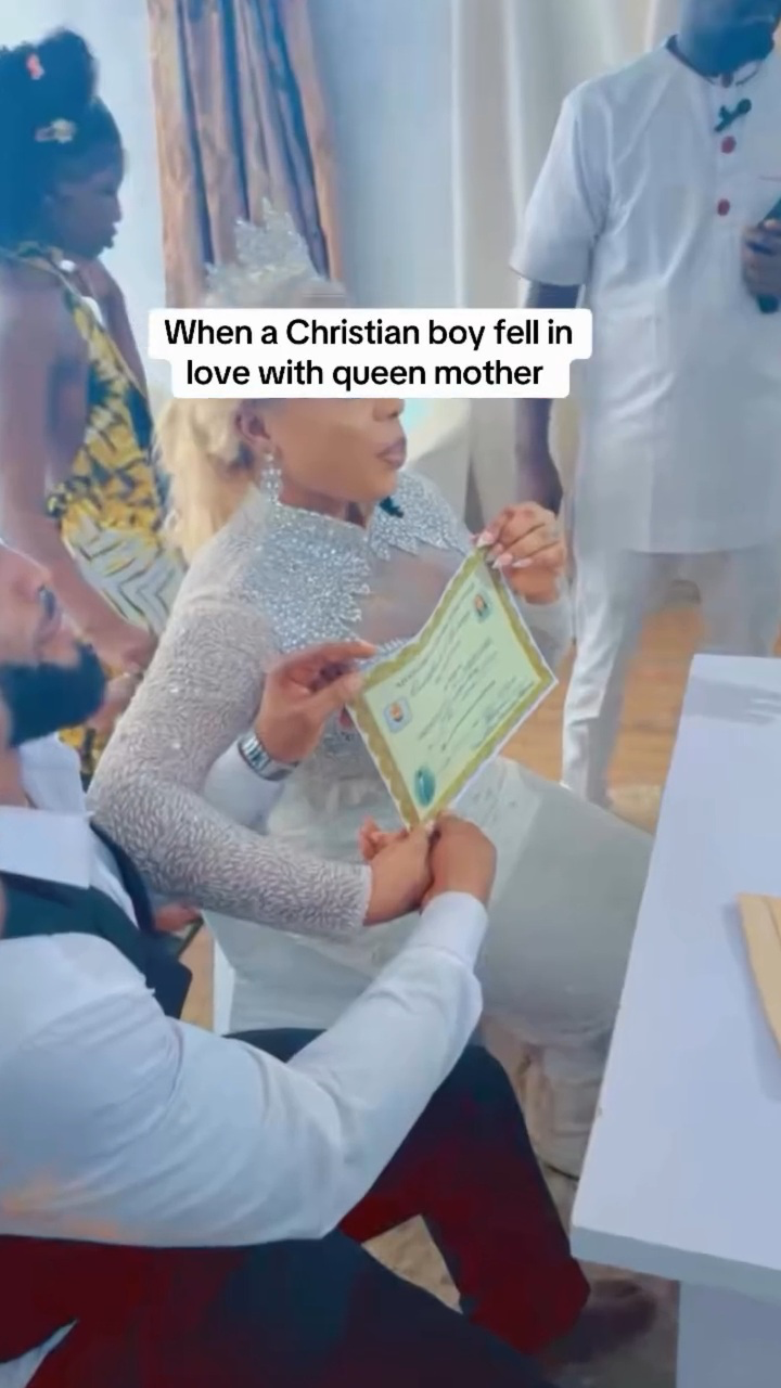 The bride also showcased their marriage certificate while joking that a Christian boy had fallen in love with a queen mother.
