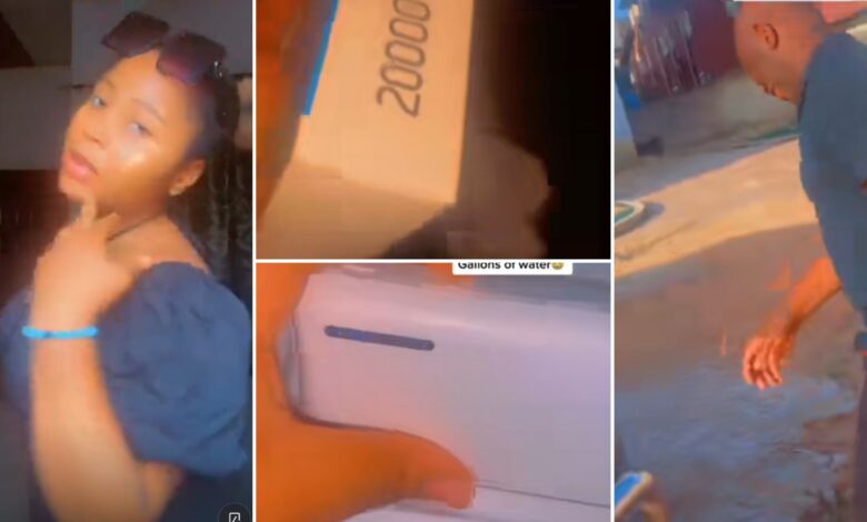 “If I don’t see a man who loves me more than my dad, I will remain single” – Nigerian lady says as dad shows up at her school with gallons of water (Video)