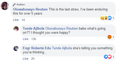 Friends were shocked and expressed it on Facebook. One mentioned that her husband is seems “cool” but that she should stay away from him until she notices a real change. Another said, “I thought you were happy?”