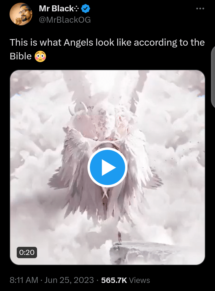 On Sunday, a man identified as Mr. Black expressed his thoughts on Twitter, aiming to inform the public about the appearance of angels as described in the Bible.