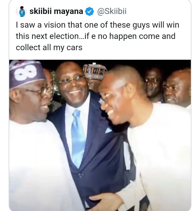 Skiibii claimed that he had a dream where he witnessed one of them emerge as the next president of Nigeria.