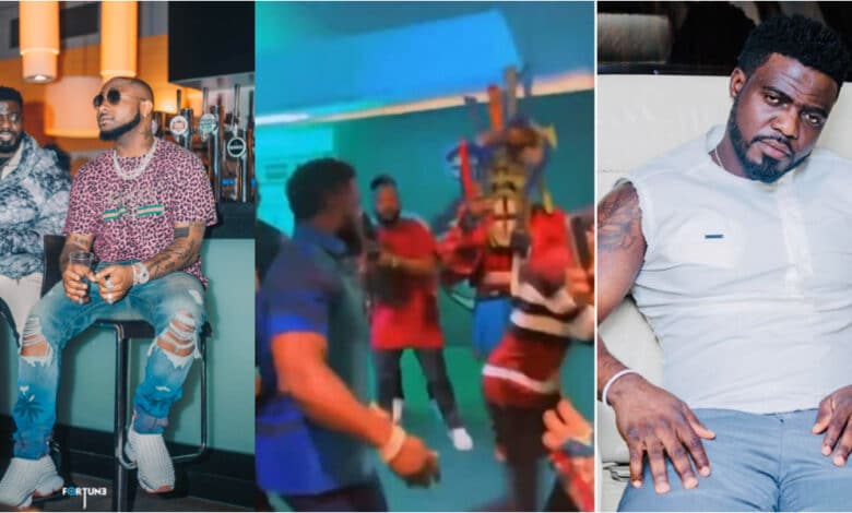 “If na me, this guy go collect” – Reactions trail as Davido’s aid, Lati seen slapping fans for coming close to artist