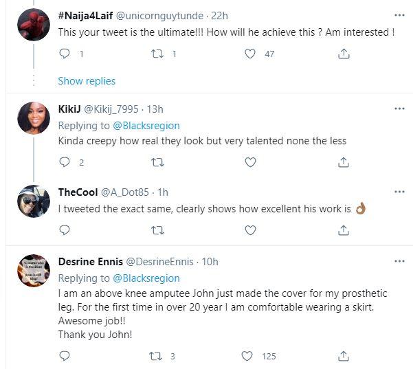 Meet John, he is a skilled craftsman from Nigeria 🇳🇬 who is paving the way in prosthetics for darker skin tones. He's very talented pic.twitter.com/IejjjRsB0L