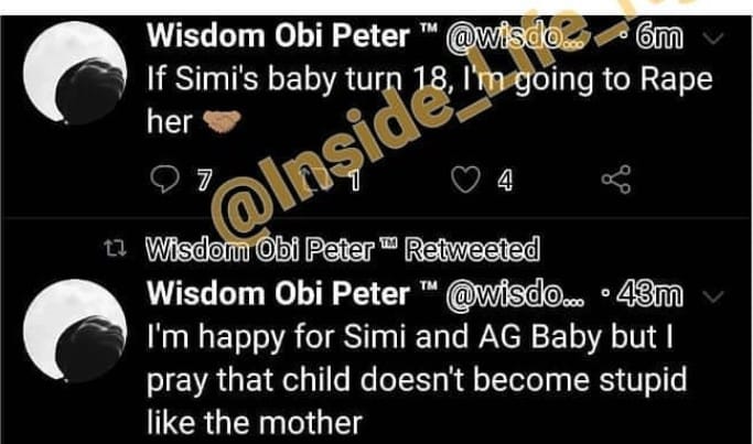 “If Simi’s daughter turns 18, I will rape her, I pray she doesn’t become stupid like her mother” – Man says (See screenshot)