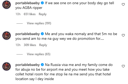 Portable took to the comment section Charles Okocha made about him to respond as well. He insisted that the actor ripped him of the money.