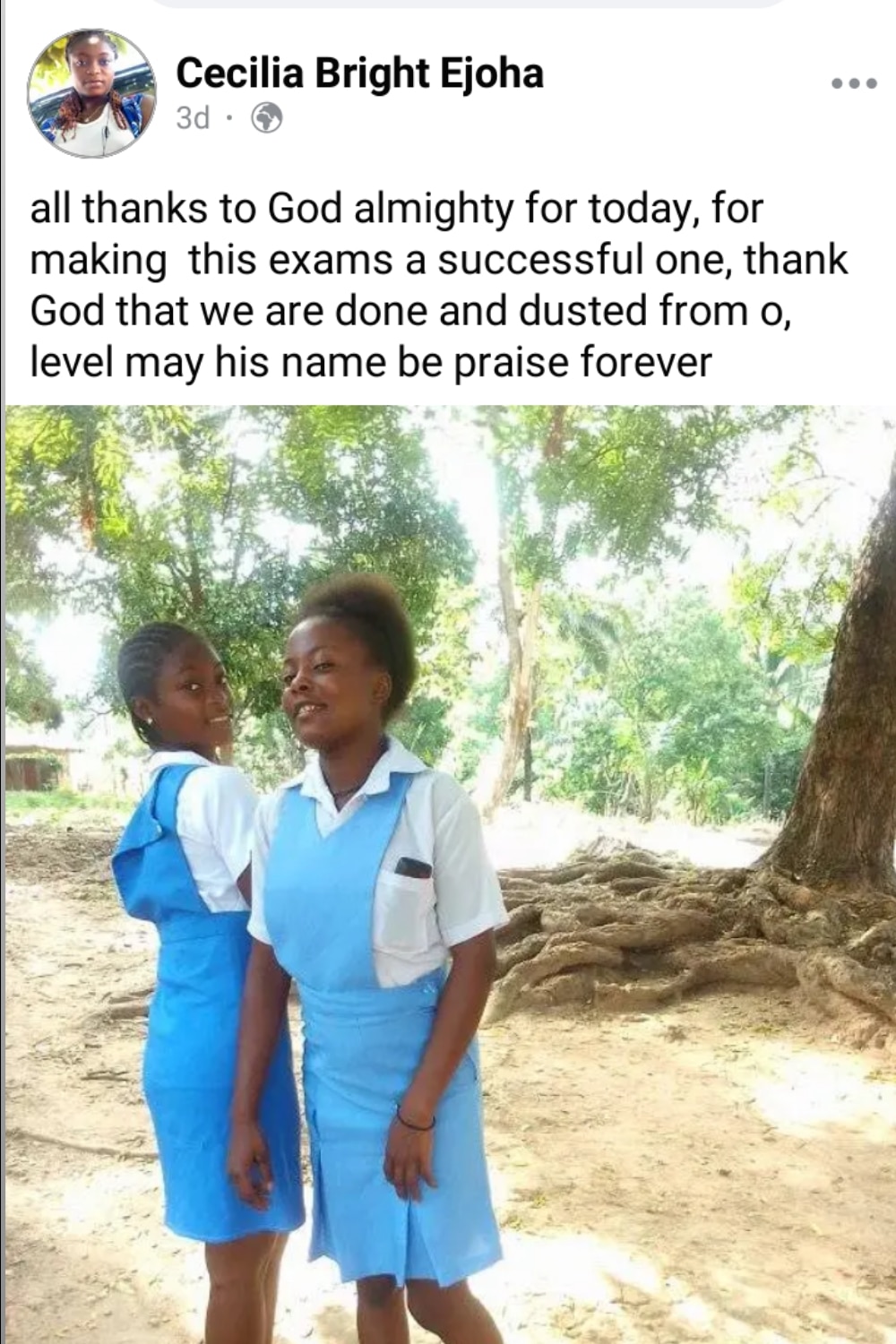 Cecilia Bright Ejoha, overcome with excitement, took to the social media platform to express her gratitude to God for completing her WAEC (West African Examinations Council) exams, but her comical blunders left netizens in stitches.