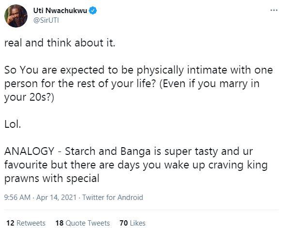 “If you leave your relationship due to cheating, then you have no business with marriage” – Uti Nwachukwu