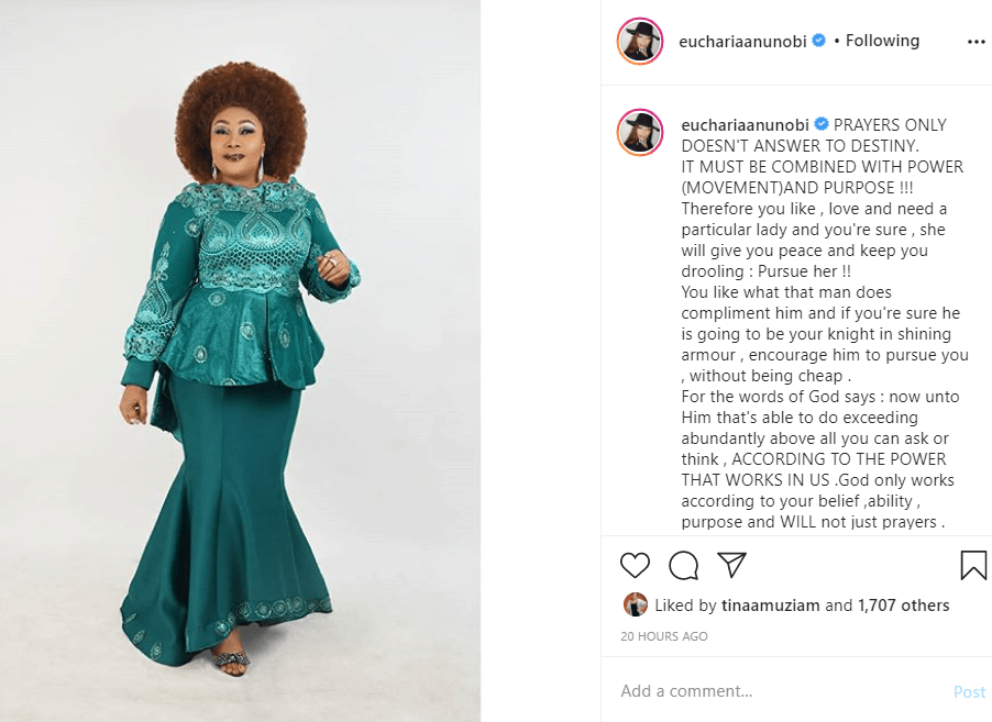 If you like a man, encourage him to pursue you without being cheap – Eucharia Anunobi advises ladies
