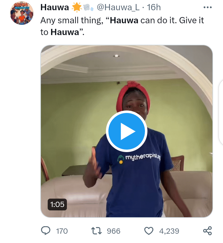 Any small thing, “Hauwa can do it. Give it to Hauwa”. pic.twitter.com/17uBRBA2lN