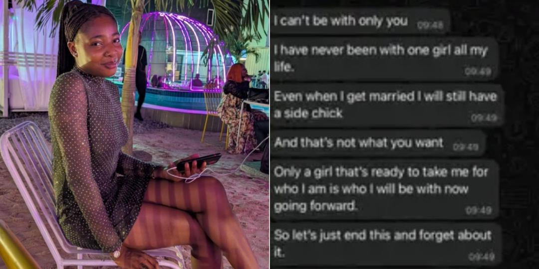 “I’ll always have a side chick” – Lady shares ‘unexpected’ breakup message she received from boyfriend