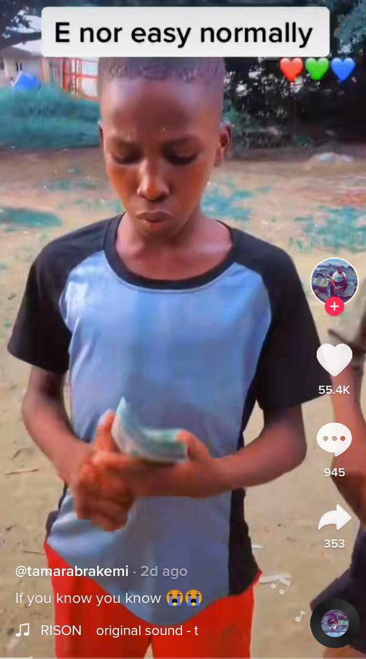 In an emotional video, one of the kids said he will give his own money to his mother so she can use it to buy garri whenever they need it at home.