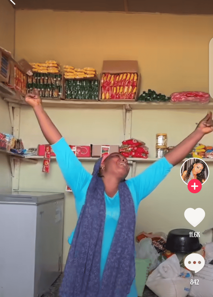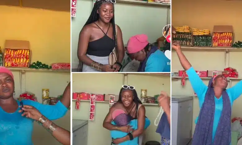 A young lady identified as @jojooflele on TikTok made a woman full of tears after gifting her a provision shop.