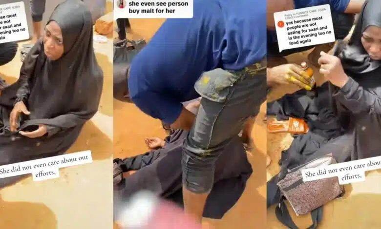 A Muslim woman, Alhaja, sparked a conversation as she fainted on the roadside while refusing to drink malt from a stranger, claiming she couldn’t consume anything while fasting during Ramadan.