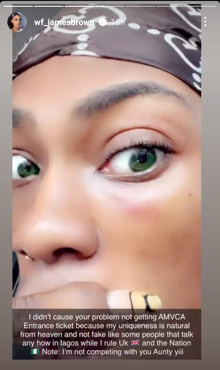 Bobrisky appears to be sulking over James Brown’s invite to the famous AMVCA awards.