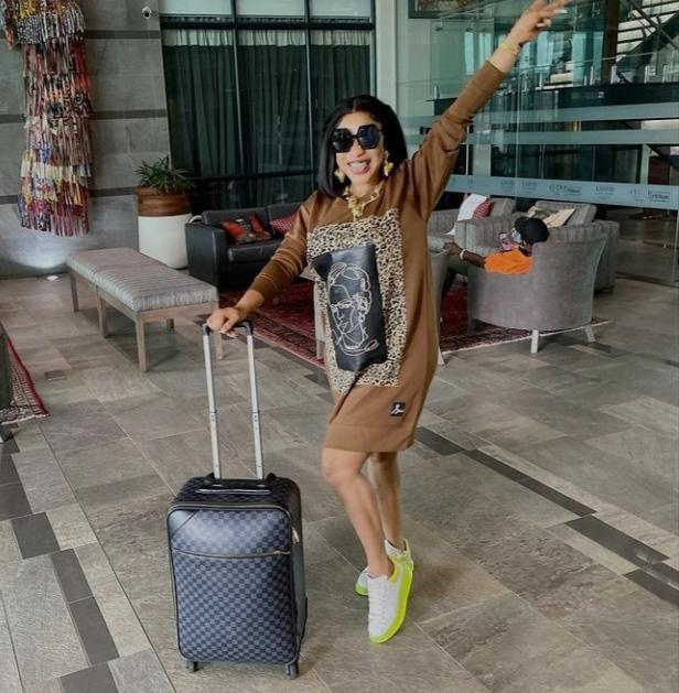 While quite a number of Nigerian celebrities and popular faces are currently at Oba in Anambra state for Cubana’s mother burial ceremony, Tonto Dikeh, who shared a photo of her with a travelling box, revealed that she’s not travelling to Oba but her husband’s house.