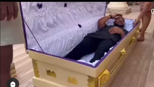 In what has now turned out to be a prohibted content, Nollywood actor Yul Edochie subtly defended himself after he was spotted inside a coffin.