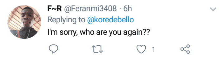 Nigerian singer and former Mavin Records signee, Korede Bello has suffered a huge knock in the hands of a twitter user who queried his fame.