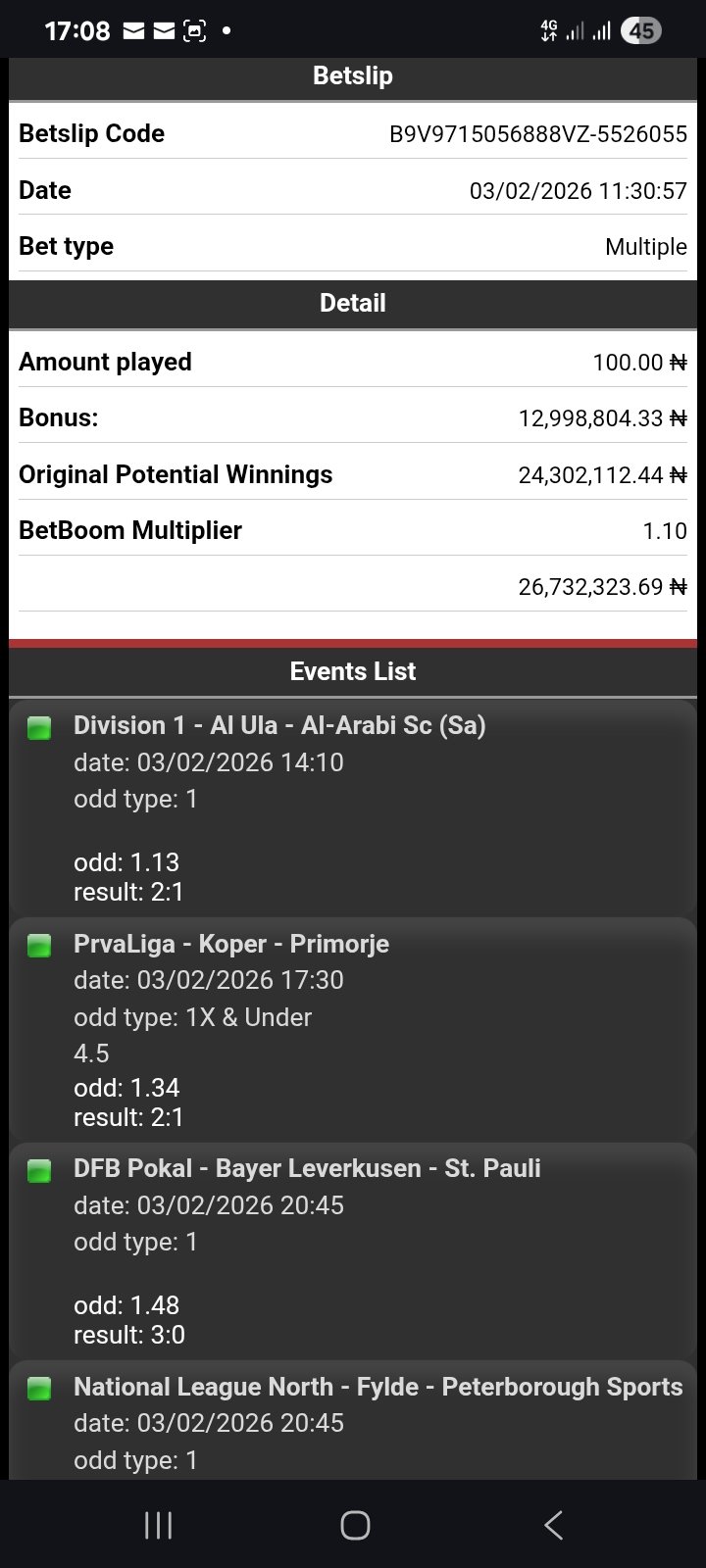 I didn’t check until Saturday morning when I checked to discovered all game is played except one without a cash out, I went out without my car,I track from Gwarimpa to Lugbe without my phone .drinking sachet wines and praying till I did the long trek back home to see myself winning N26million with N100. Am still unstable to drive since then This is the ticket code.B9V9715056888VZ-5526055.