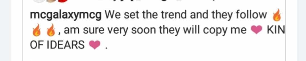 “We set the trend and they follow, am sure very soon they will copy me KING OF IDEARS.”