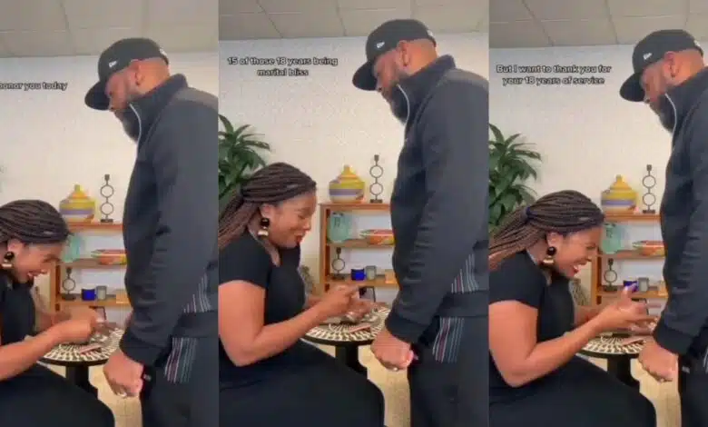 “I’m thanking you for 18 years of service; you’ve stretched me in many ways with your hard work” – Woman lavishes praises on husband’s manhood (Video)