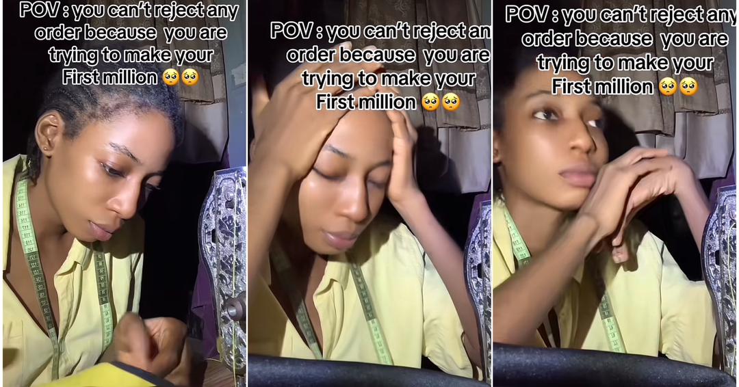 A Nigerian lady’s pursuit to make her first million from sewing despite being exhausted from too much work has stirred emotions online.
