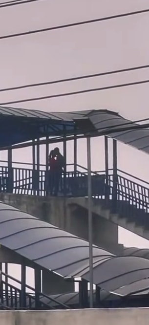 Young Nigerian couple have stirred reactions online as they’re spotted on a pedestrian bridge displaying affection publicly.