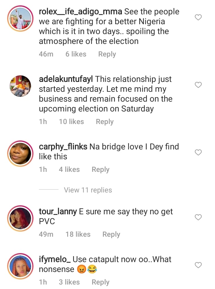 adelakuntufayl wrote: “This relationship just started yesterday. Let me mind my business and remain focused on the upcoming election on Saturday”