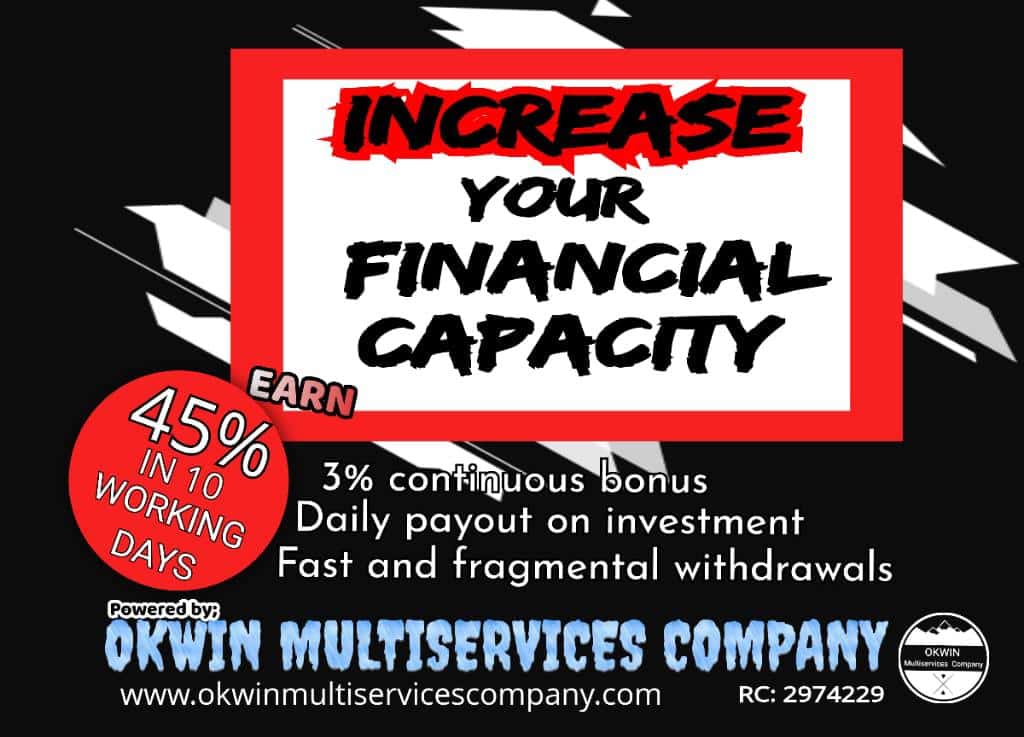OKWIN is a newly registered Private Investment Company in Nigeria that is Strictly based on trades that generates interest or profit through financial market trading such as oil services, agriculture, livestock, cashew etc