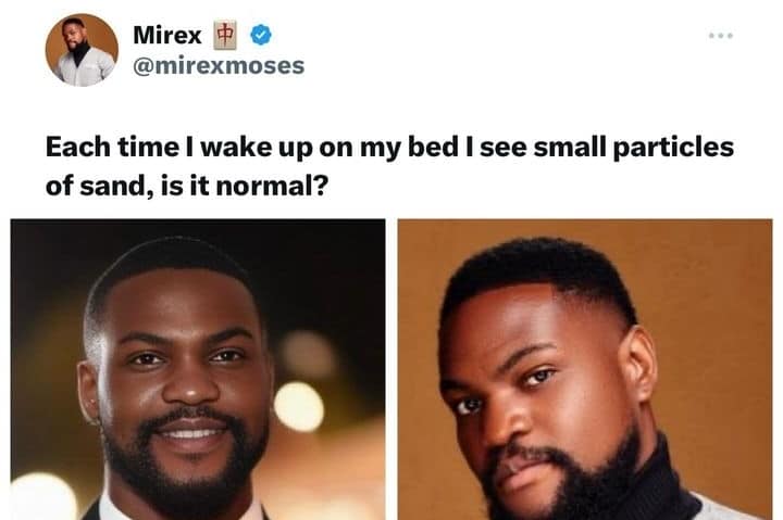 @mirexmoses took to social media to express his confusion and concern about the presence of small particles of sand on his bed each morning upon waking up.