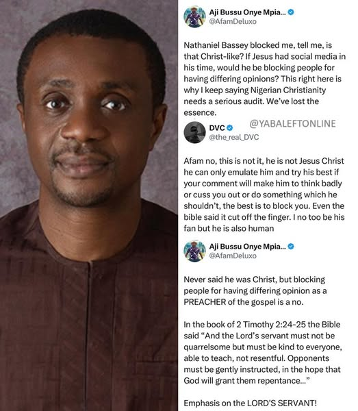 “Nathaniel Bassey blocked me, tell me, is that Christ-like? If Jesus had social media in his time, would he be blocking people for having differing opinions? This right here is why I keep saying Nigerian Christianity needs a serious audit. We’ve lost the essence.”