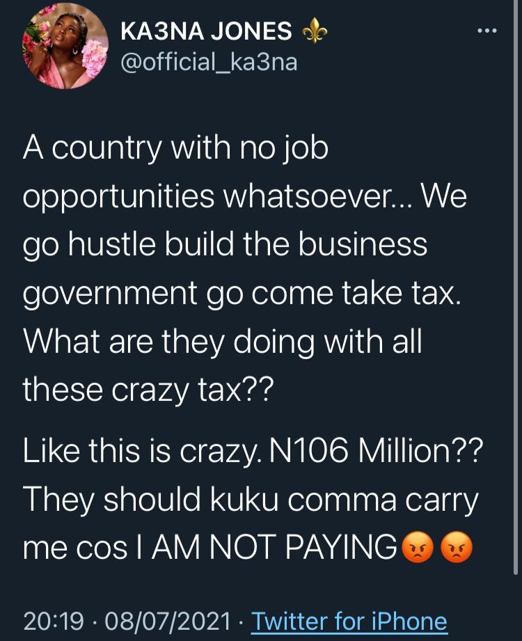 Like this is crazy. N106 Million?? They should kuku comma carry me cos I AM NOT PAYING??.”