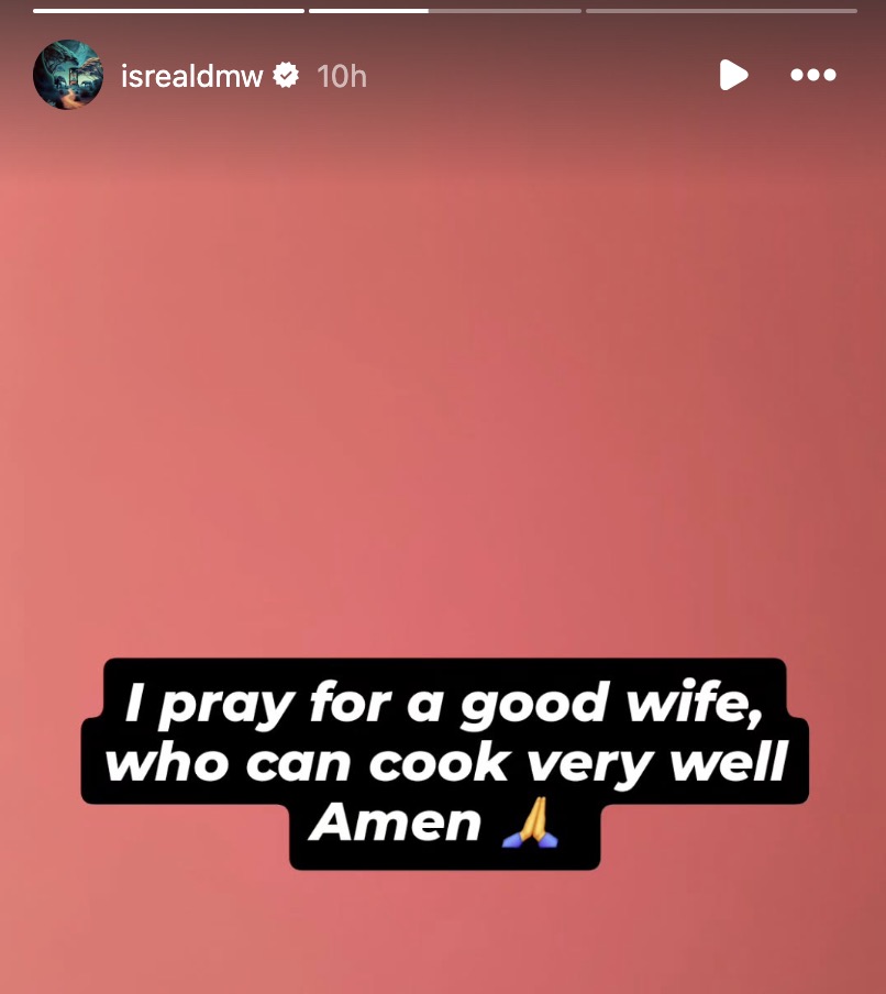 Davido’s logistics manager, Isreal DMW expresses his desire for a fresh start in his marital journey as he pleads to God for a wife who is a great cook.