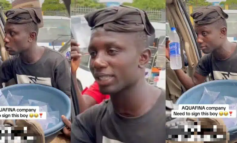 In the recently uploaded video, the young man held an Aquafina water bottle in his right hand while articulating its benefits using sophisticated language.